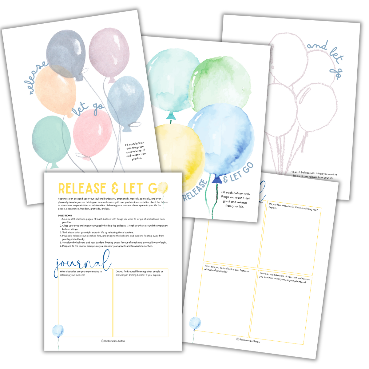 Directions walk clients through expressing their burdens and imagining the process of releasing the balloons and watching the burdens float far away. Clients then respond to a series of journal prompts to reflect on their burdens and desired freedom as they consider their growth and forward momentum.