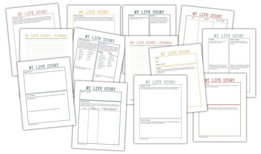 Narrative therapy focuses on a client's understanding of their own story and how their emotions, actions, and problems fit into the context of their story. This activity helps clients construct a story of their experiences that builds meaning and a positive identity. Specifically designed for substance abuse and behavior addictions.